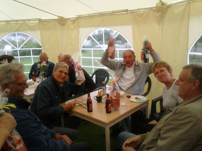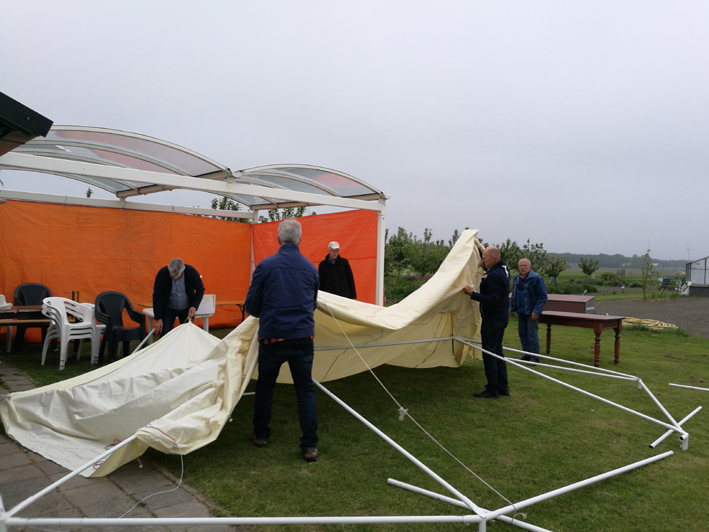 De jaarvergadering in ons clubhuis, daarna een gezellig samen zijn, om ook het 55 jarig bestaan van onze vereniging te vieren!!Helaas liet de zon zich niet zien, maar doordat de party tent er stond met zij wanden was het goed(/redelijk) te doen.
