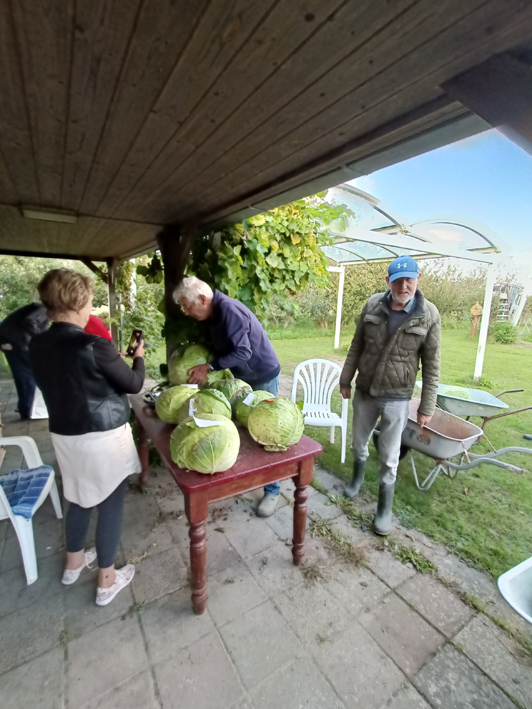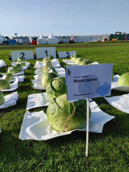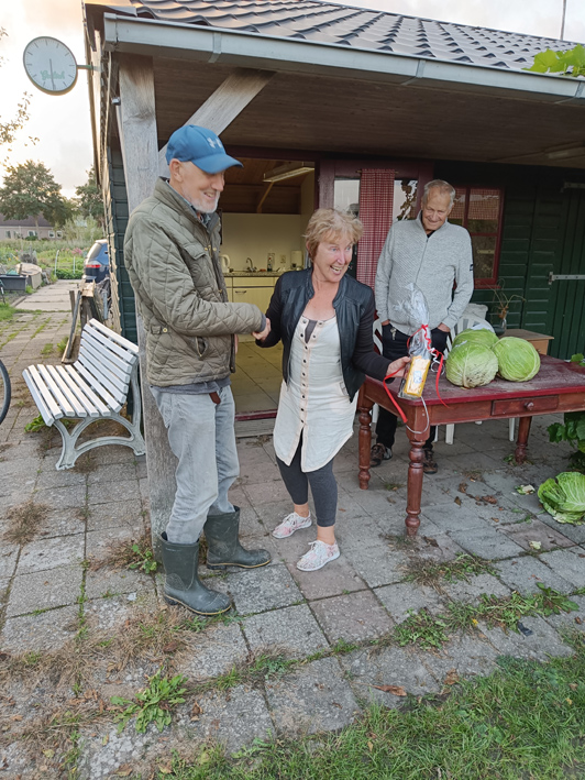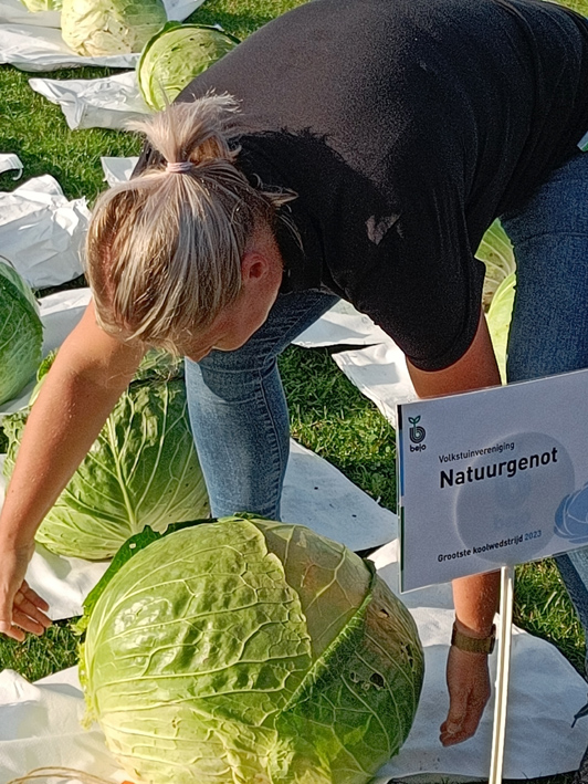 De grootste kool wedstrijd, voor alle deelnemers van onze volkstuin Natuurgenot werd weer een wedstrijd gehouden. En welke kolen, de 8 zwaarste mogen mee, naar de weeg wedstrijd bij Bejo! De kruiwagen helemaal gevuld met 1 kool! Piet Mosch weer zwaarste kool, Leo Rozendaal op de 2e plek, en Nico Groot bij Natuurgenot. Ook dit jaar had Piet Mosch weer de zwaarste kool, van het hele deelnemersveld! Van harte gefeliciteerd Piet! En op de 2e plaats Leo! Voorzitter Theo, nam de prijs in ontvangst! Dit jaar had Natuurgenot, die de groepprijs gewonnen, jammer. Deze prijs ging dit jaar naar de Zwartje uit Tuitjenhorn, hadden een gemiddelde van 15,6 kg Ons totaal van de 8 zwaarste kolen was 100.365 kg